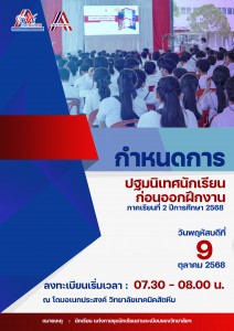 7 เดือน ที่ผ่านมาปัจฉิมนิเทศนักเรียน นักศึกษาฝึกงาน และฝึกอาชีพ ภาคเรียนที่ 2 ปีการศึกษา 2567 (ในวันที่ 18 กุมภาพันธ์ 2568 ณ โดมอเนกประสงค์ วิทยาลัยเทคนิคสัตหีบ)